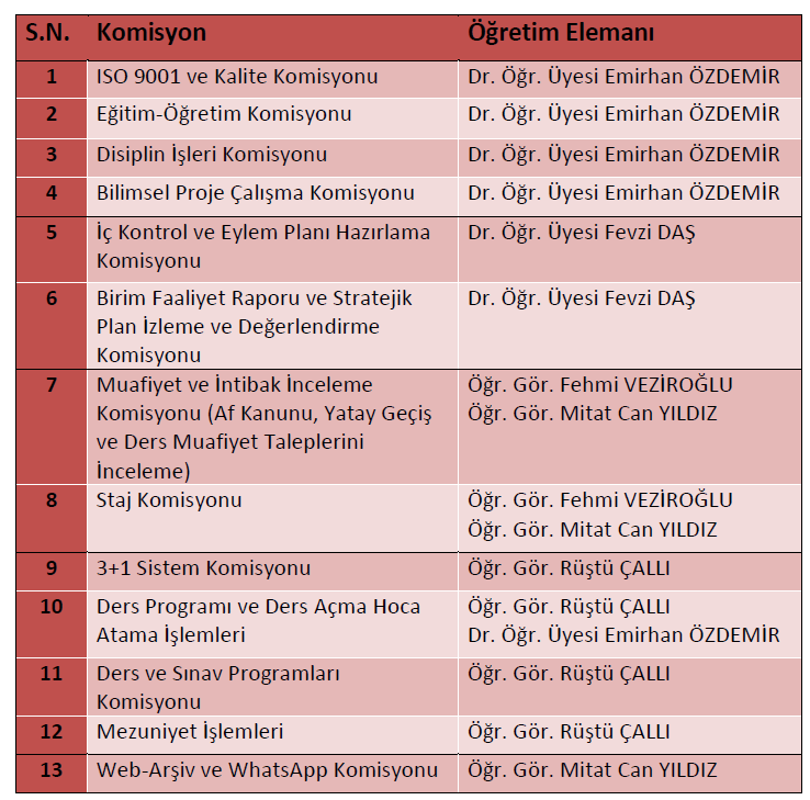 Bölüm İçi Komisyonlar